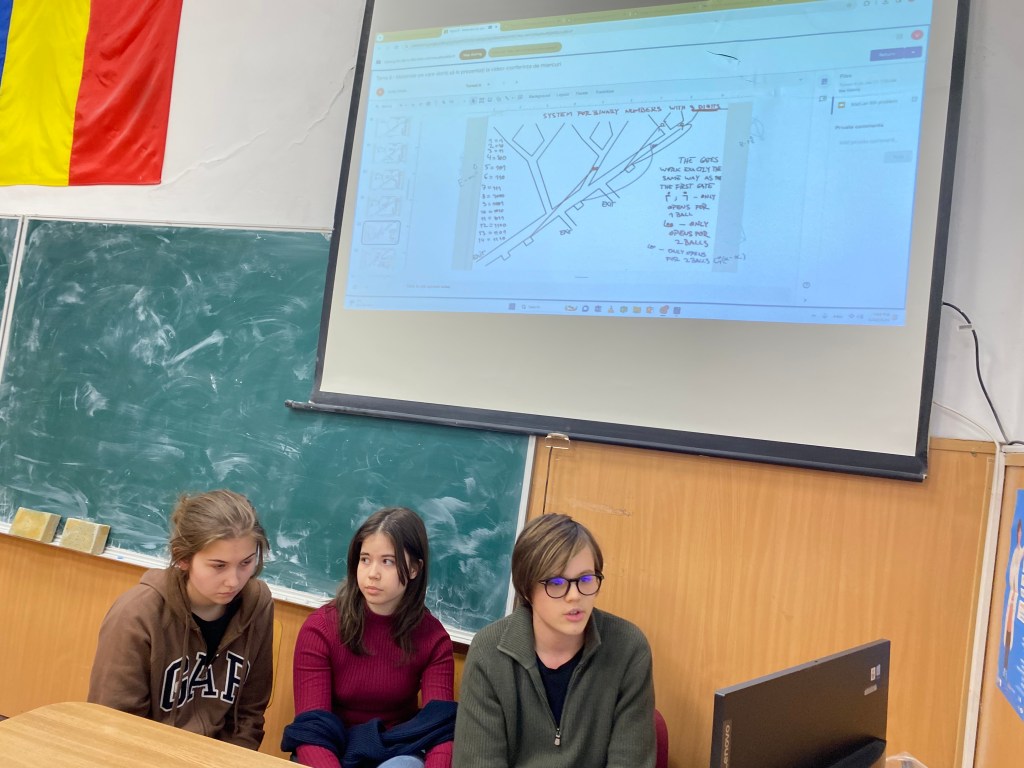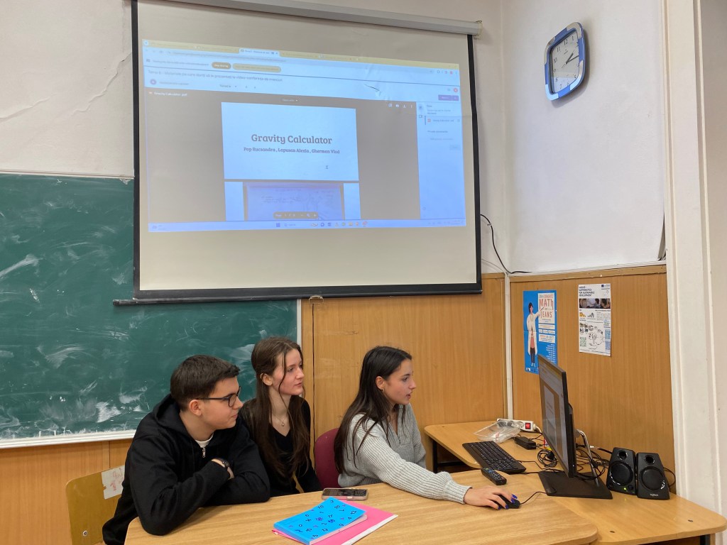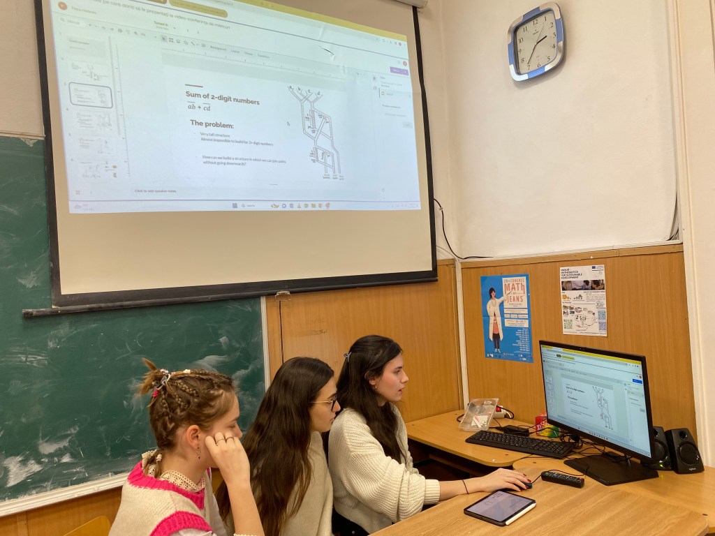 Una dintre temele de cercetare abordate în cadrul proiectul „Maths research workshop” este realizarea unui calculator gravitațional. Elevii din cele două școli partenere au de proiectat un calculator în care numerele sunt reprezentate de bile, iar căderea lor permite adunarea numerelor. În cadrul videoconferinței dedicate acestei teme, cele patru grupe de la Colegiul Național Emil Racoviță și grupul de la Liceul Val de Durance și-au împărtășit planurile, mecanismele și prototipurile primelor modele.