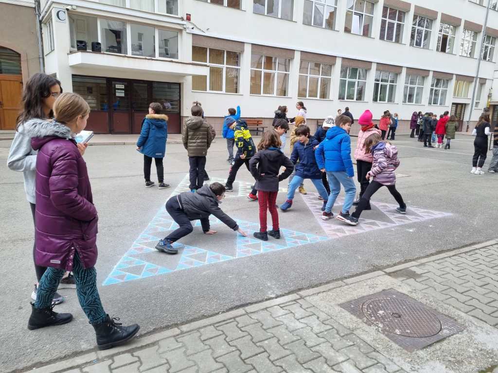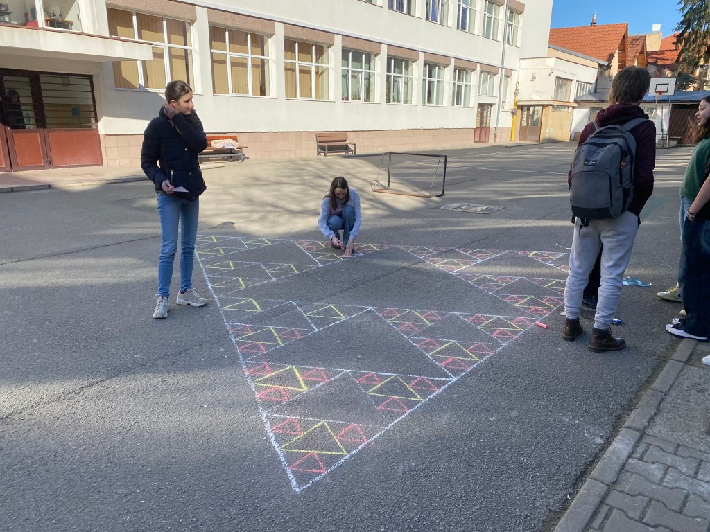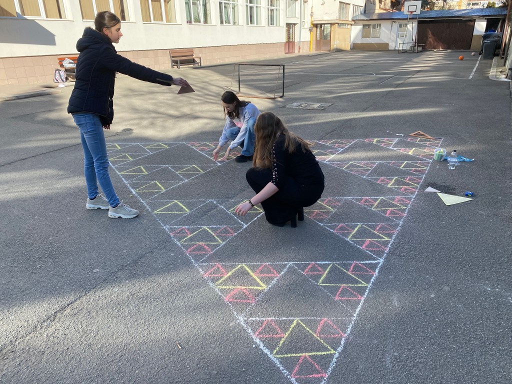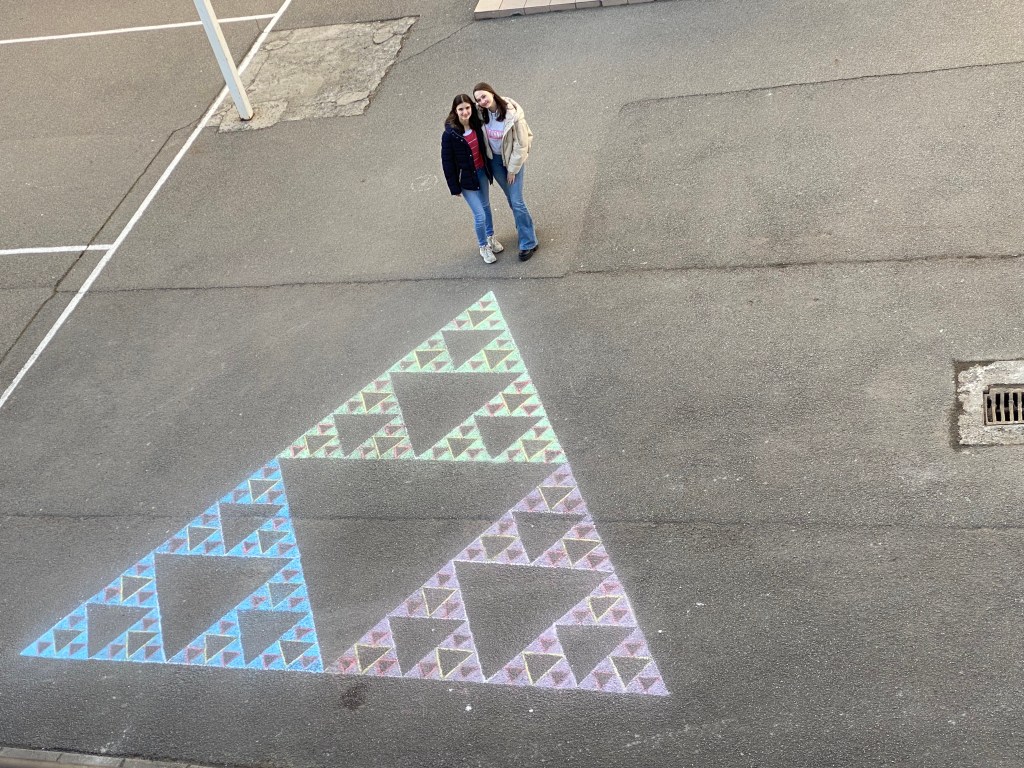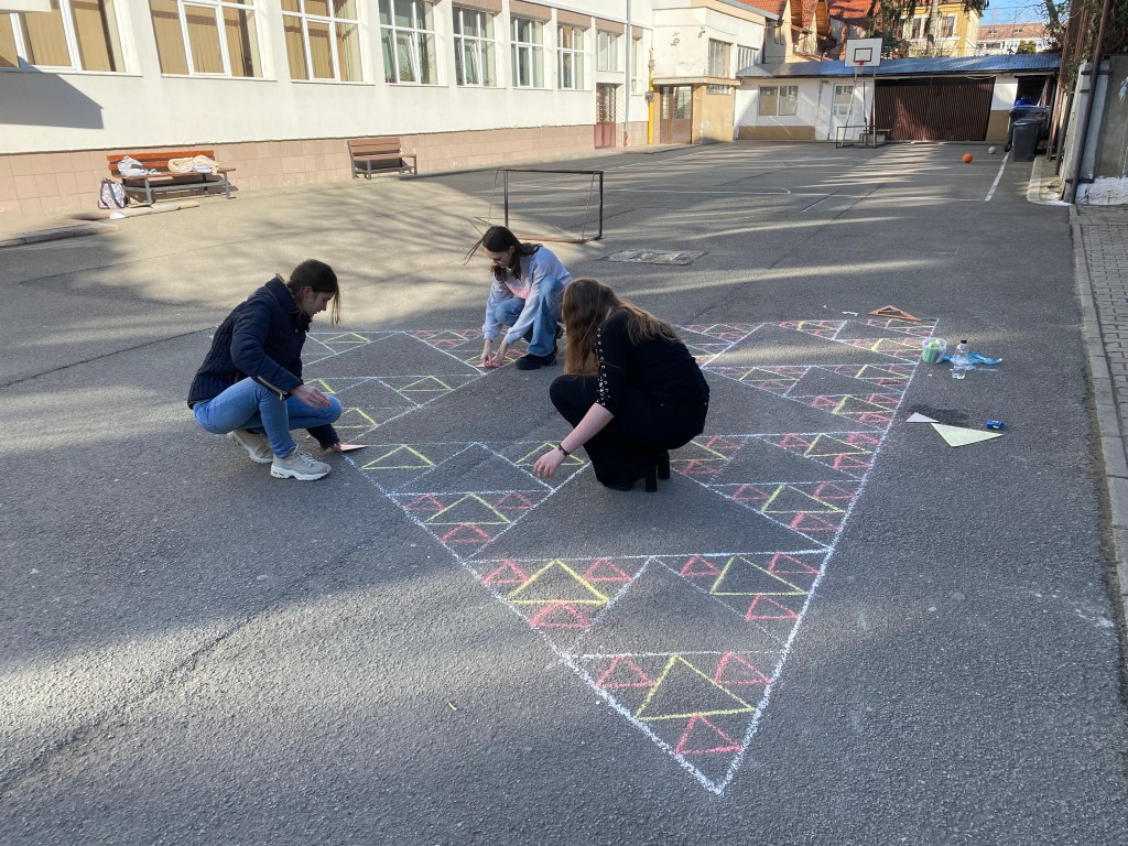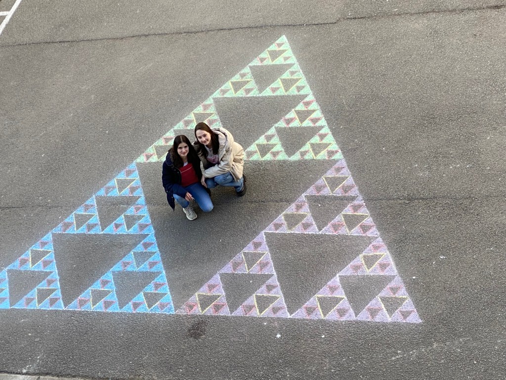 Laura Costea și Teodora Moga, eleve în clasa a X-a A, au proiectat și realizat în curtea școlii desenul arborelui fractal pe care l-au studiat în cadrul Atelierului de cercetare matematică.