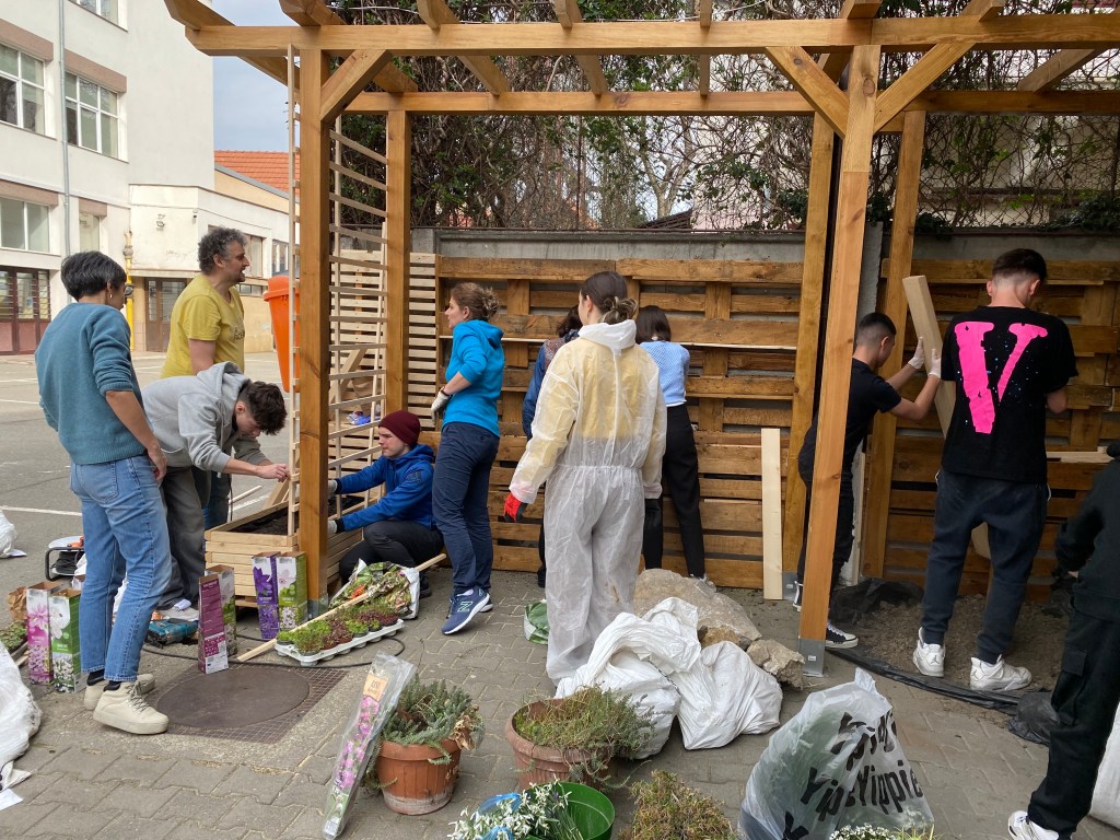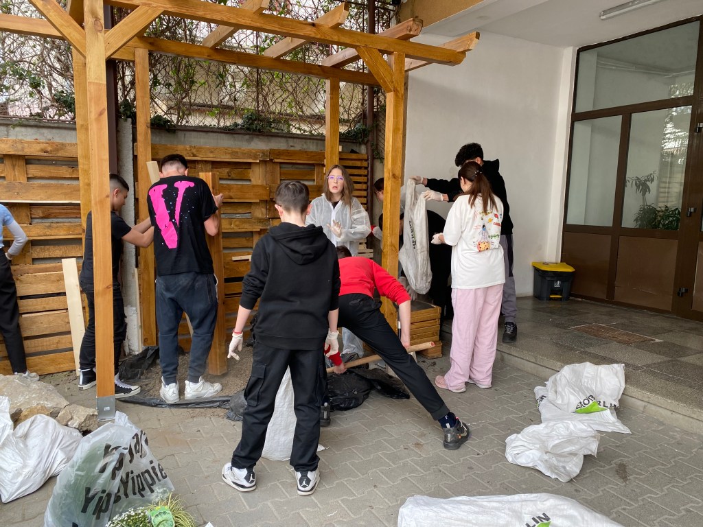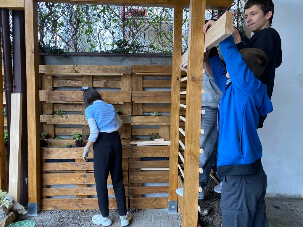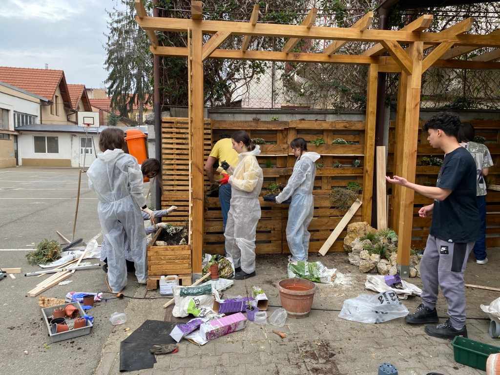 În ianuarie și februarie 2024, elevii au lucrat la realizarea grădinii verticale din curtea școlii.