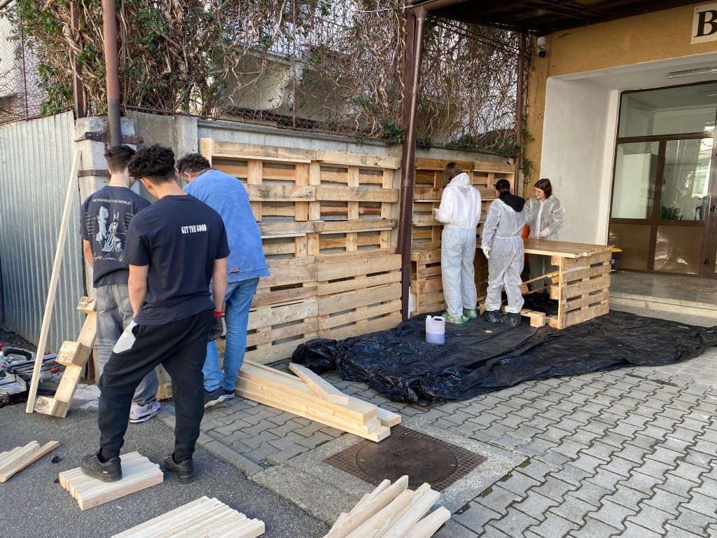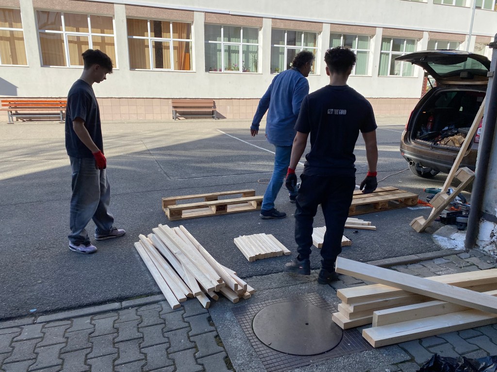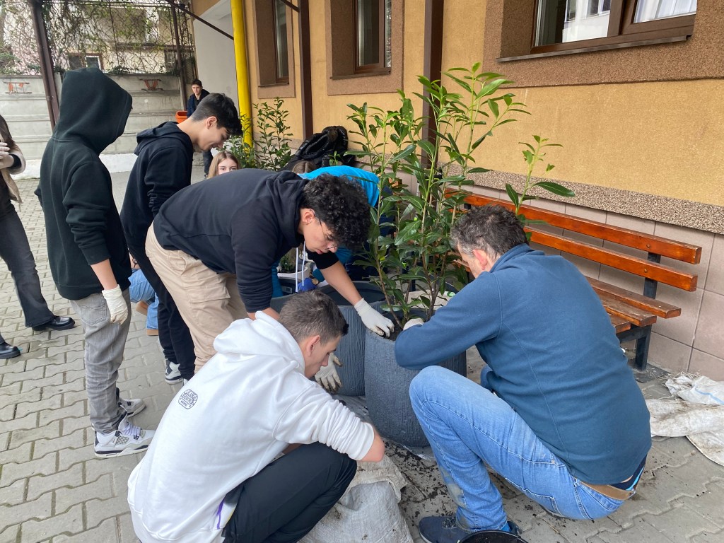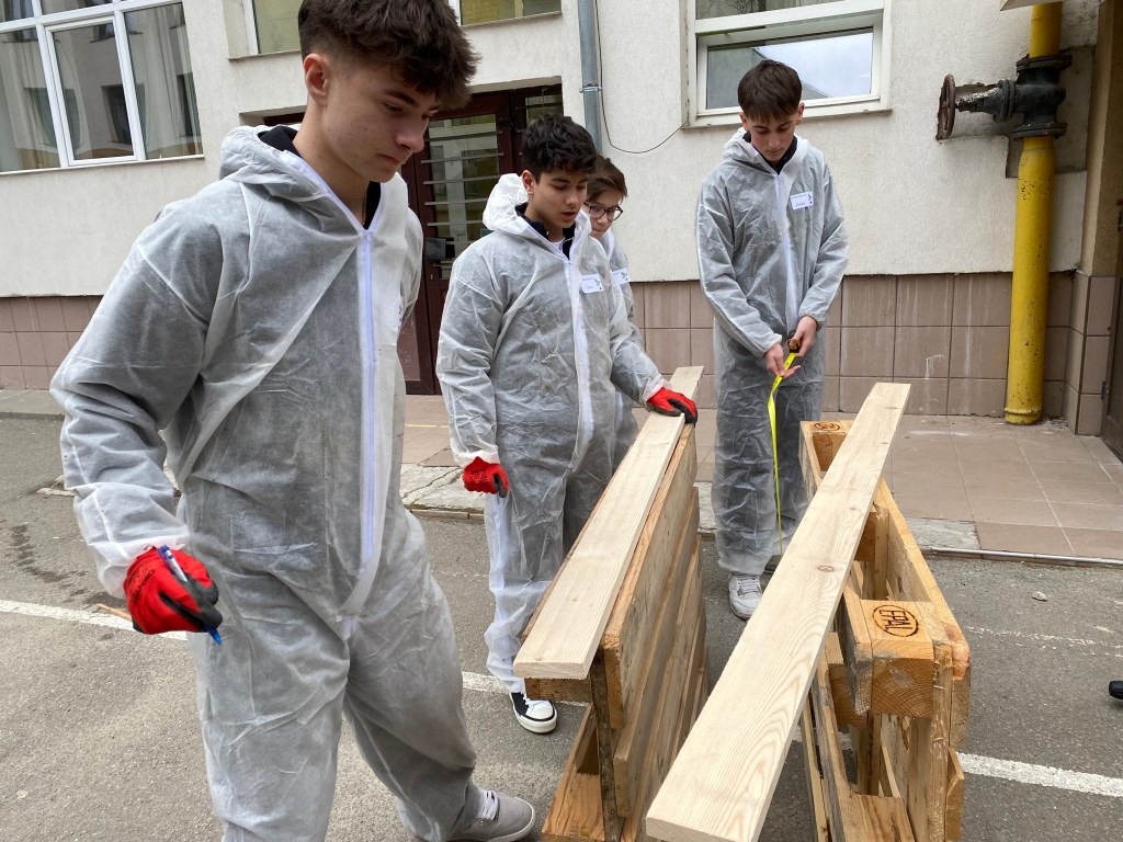 În ianuarie și februarie 2024, elevii au lucrat la realizarea grădinii verticale din curtea școlii.