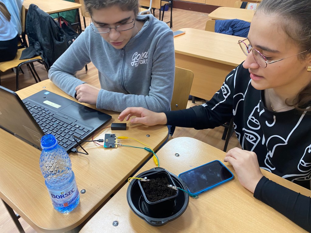În decembrie, elevii au realizat senzori de umiditate și au plantat deja primele plante în ghivece.