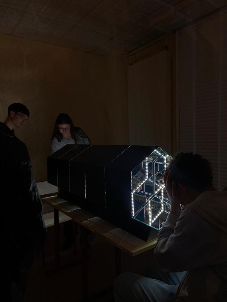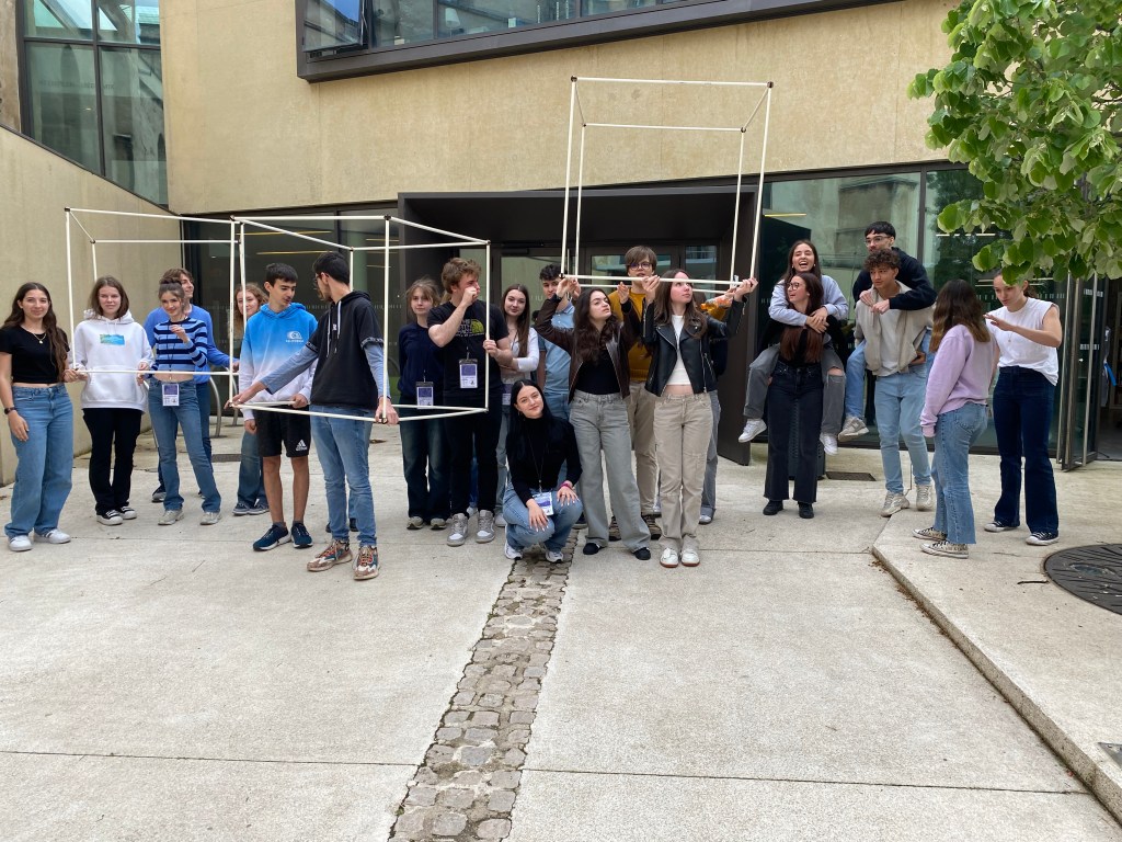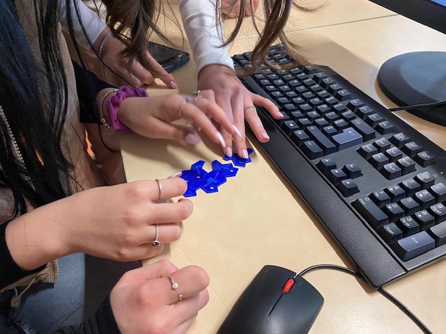 Apoi, am creat obiecte tridimensionale într-un program pe calculator și am savurat un prânz delicios la cantina școlii. După-amiaza a fost dedicată construcției de structuri impresionante la mediatecă, folosind materiale diverse precum țevi de PVC și forme de lemn prelucrate cu un laser specializat.
