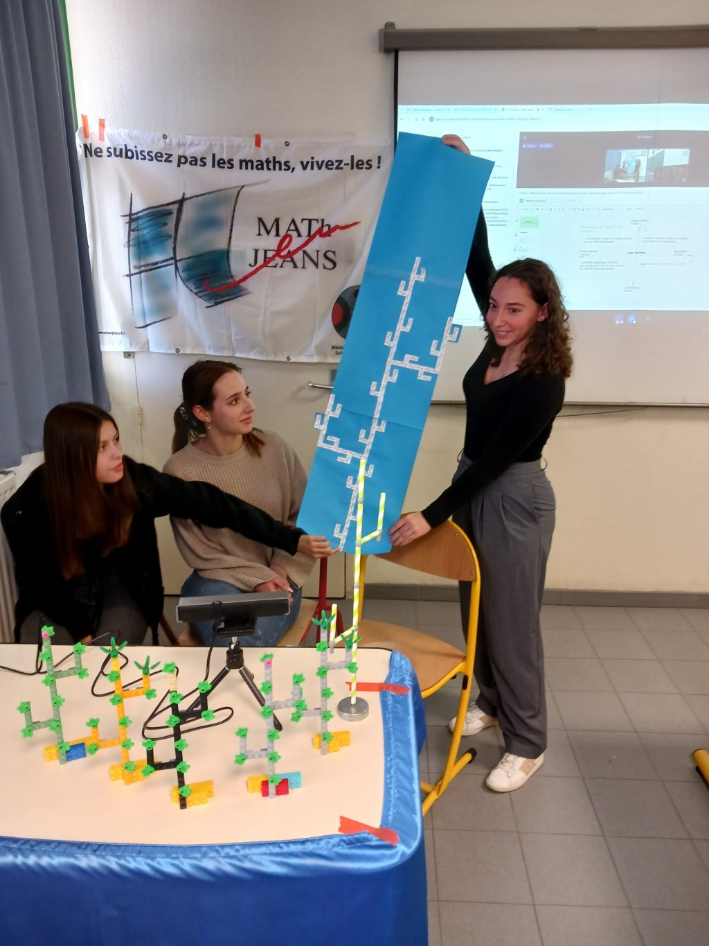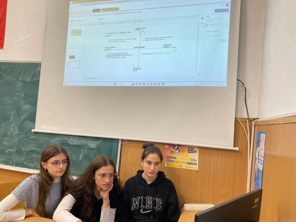 A treia videoconferință din cadrul proiectului Erasmus+ MeJ Makers s-a axat pe o temă de cercetare pe cât de fascinantă, pe atât de spinoasă: cactușii. Această provocare matematică și științifică reunește două grupuri de la Colegiul Național Emil Racoviță din Cluj-Napoca și alte două de la Lycée Val de Durance din Pertuis. Fiecare grup și-a prezentat pe rând rezultatele. Elevii din CNER au realizat niște simulări digitale superbe, în timp ce cei din Pertuis s-au axat mai mult pe creații concrete. Acestea din urmă combină o varietate de tehnici, inclusiv modele de hârtie, structuri LEGO și prototipuri de paie. În acest scop, laboratorul de științe inginerești al școlii a proiectat mici piese care permit montarea paielor pentru a „construi” cactuși modelați.