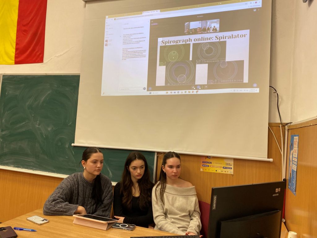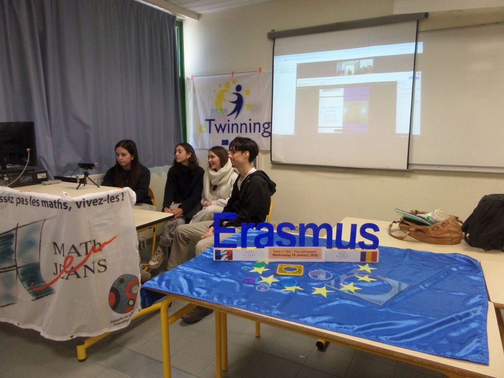 Tema de cercetare a acestei videoconferințe, organizată în cadrul proiectului MeJ Makers, a fost spirograful, un instrument distractiv care vă permite să creați desene magnifice în timp ce explorați concepte matematice fascinante. Cele trei grupuri de elevi franco-români au petrecut o oră discutând despre descoperirile lor, consolidându-și înțelegerea temei.