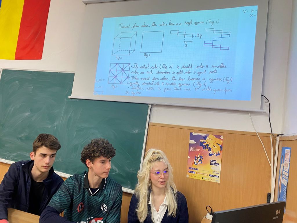 Tema de cercetare „Scara ciudată” a încheiat seria videoconferințelor de miercuri după-amiază din cadrul proiectului ERASMUS MeJ Makers. Trei grupuri de elevi de la Colegiul Național Emil Racoviță și trei grupuri de la Lycée Val de Durance au lucrat la acest subiect începând cu luna septembrie, timp de o oră pe săptămână. Ca la fiecare videoconferință între grupurile franco-române, am fost surprinși de diversitatea abordărilor adoptate de elevi.