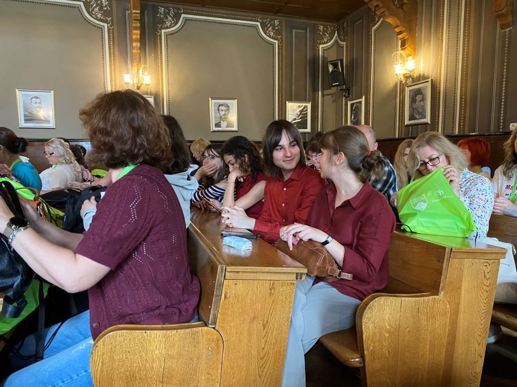 După ce am luat micul dejun, am ajuns la Colegiul Național „Andrei Șaguna” din Brașov, unde ne-am instalat materialele aduse pentru prezentarea temelor noastre de cercetare. Am participat la conferința de deschidere susținută de James Tanton, unde s-a adus în discuție infinitul.
