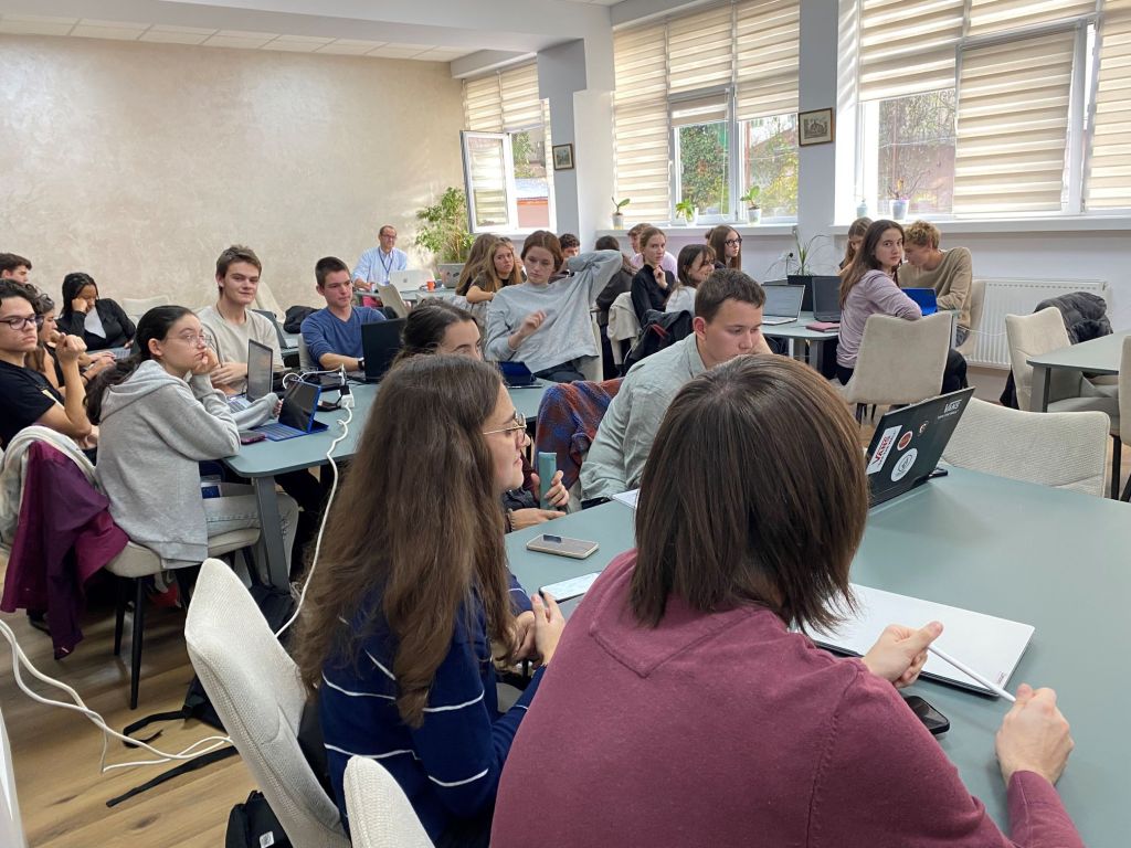 După un prânz copios, elevii s-au întors la cursurile legate de AI, pe care le-au abordat cu mai multă ușurință, având deja încălzirea făcută, astfel încât ora „compostării” exit ticket-urilor a sosit pe nesimțite. Răspunsul la întrebare a venit de la sine: am învățat despre mecanismele și funcționalitățile AI-ului, despre multiplele lui utilizări și am înțeles ce se întâmplă, de fapt, atunci când AI-ul luptă alături de noi pentru a rezolva temele de la școală. Odată oferit răspunsul, elevii români și francezi au putut să se bucure cot la cot de ultima seară (din această săptămână) petrecută în România.