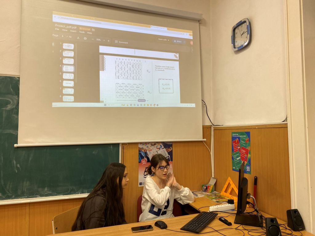 Echipa formată din 2 eleve din clasa a X-a din CNER a abordat problema prin intermediul matricelor, o metodă riguroasă care permite analizarea sistematică a modelelor și identificarea relațiilor dintre elementele lor.