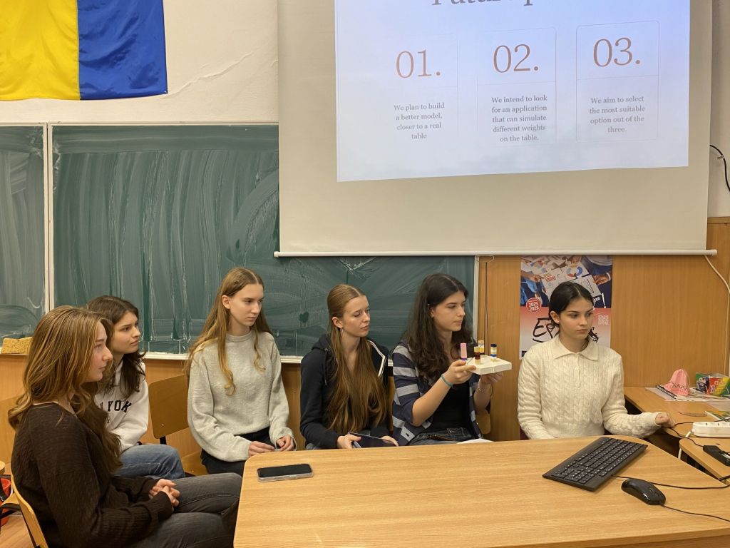 Încă din luna septembrie, elevii români și francezi explorează această întrebare centrală, analizând poziționarea picioarelor mesei și modul în care centrul de greutate influențează echilibrul. Pentru a testa ipotezele formulate, echipele lucrează în prezent la realizarea unor machete fizice, menite să verifice dacă soluția teoretică — plasarea centrului de greutate al celor patru piese componente — oferă într-adevăr cea mai stabilă variantă.