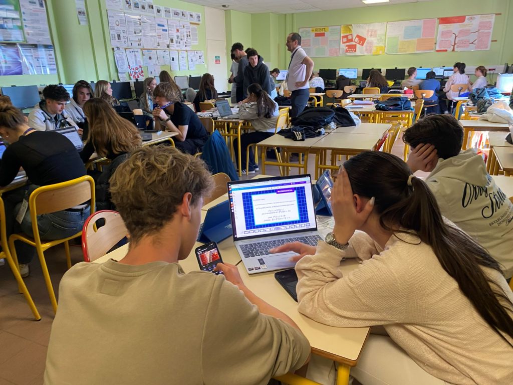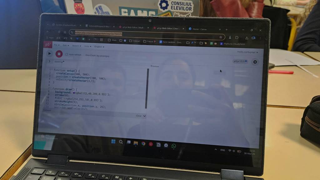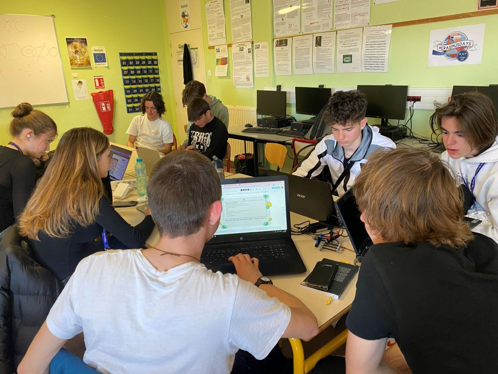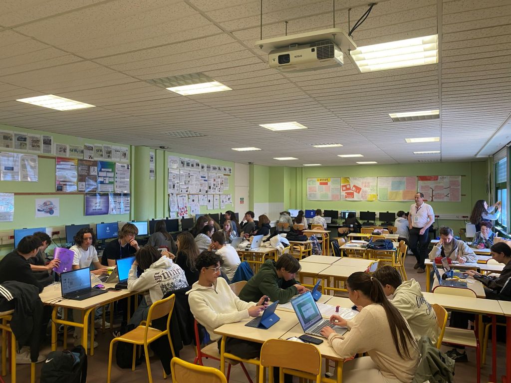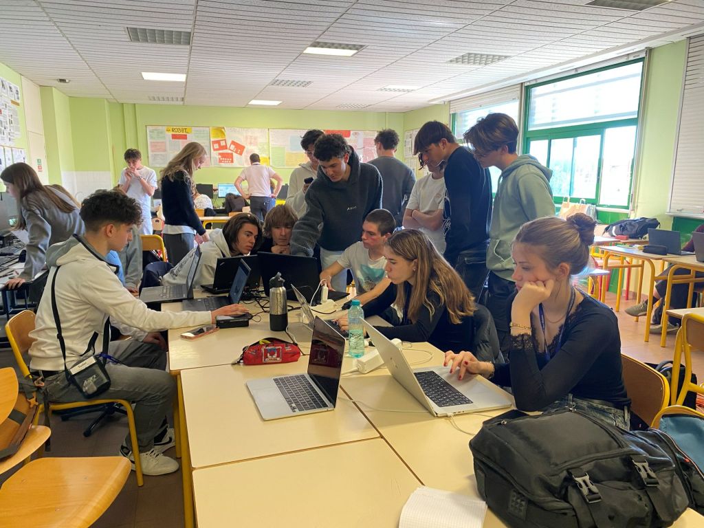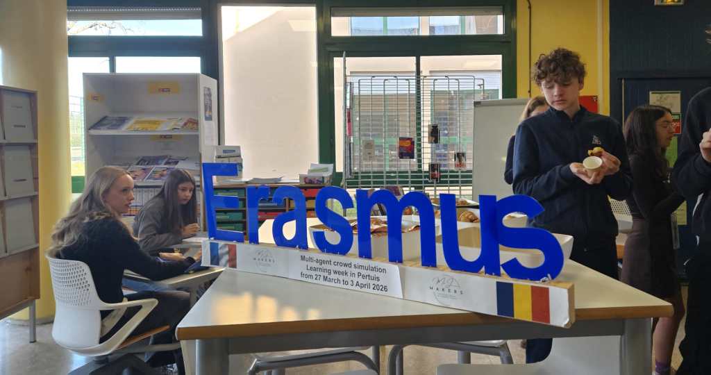 Prima destinație a fost CDI, biblioteca lor, unde am făcut cunoștință cu conducerea liceului. În continuare, ne-am deplasat către o sală de clasă în care a avut loc prima lecție din seria de ateliere despre Multi-agent crowd simulation.