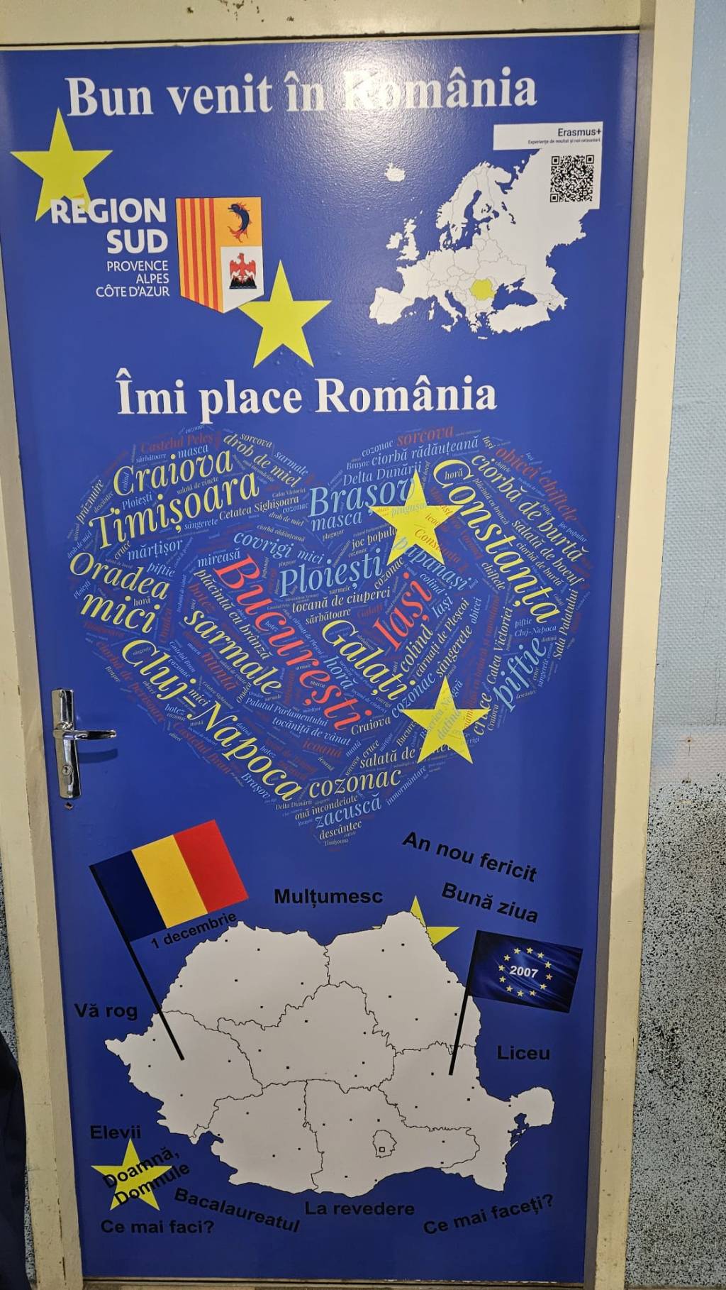 Ne-am început ziua de luni în fața liceului, bucurându-ne de soare și de poveștile din excursia din weekend. În interiorul clădirii ne așteptau vitralii, desene frumoase și urări de bun-venit pe televizoarele de pe pereți.