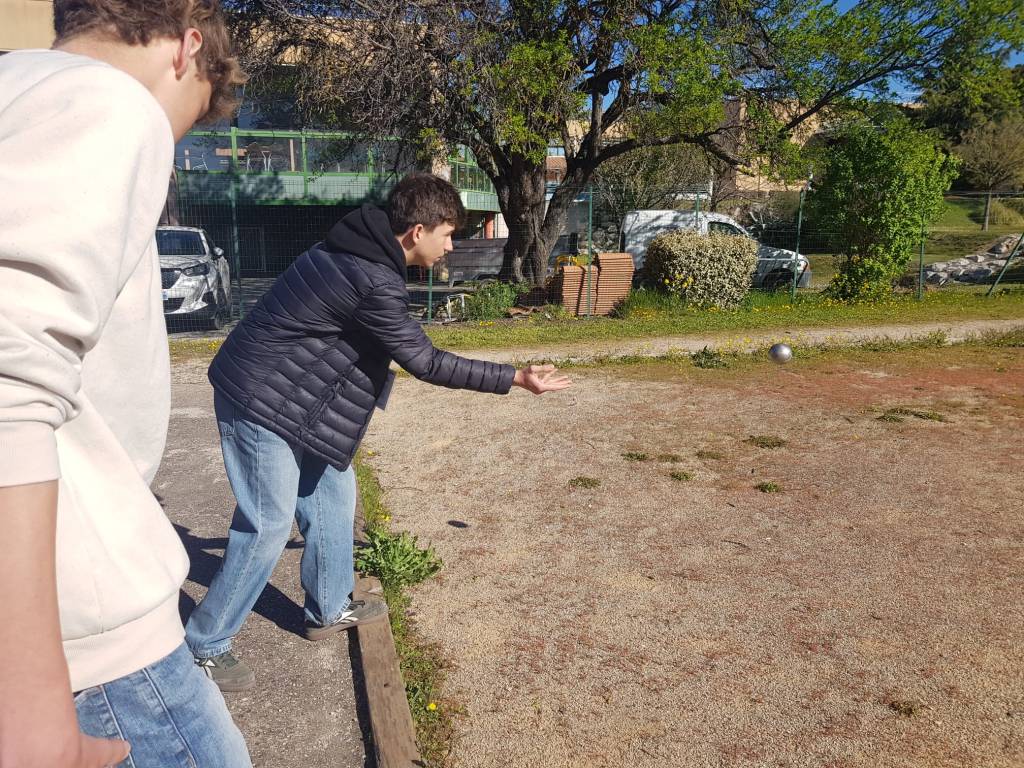 De data aceasta, am terminat atelierul înaintea mesei de prânz. A urmat o introducere în tradiționalul joc sportiv Pétanque, pentru care am fost împărțiți pe echipe. Pétanque constă în aruncarea unor bile metalice cât mai aproape de ținta din lemn, iar echipa care ajunge cel mai aproape câștigă runda. Acest joc necesită concentrare și precizie, deoarece o singură aruncare greșită poate modifica complet așezarea bilelor pe teren.