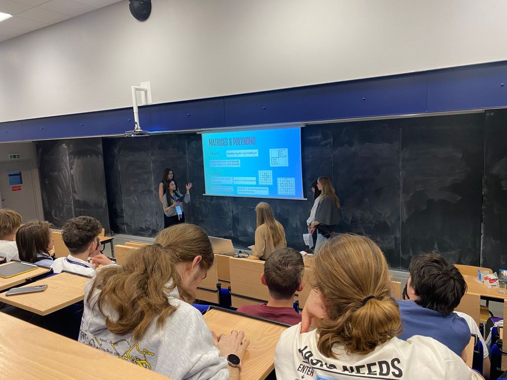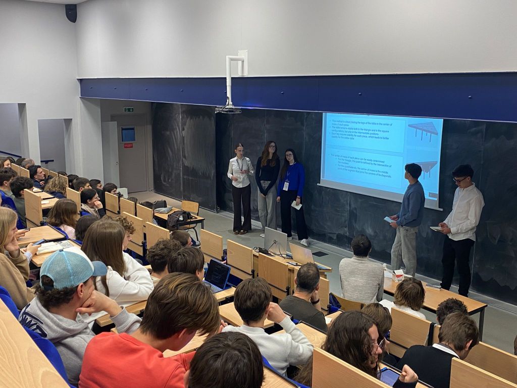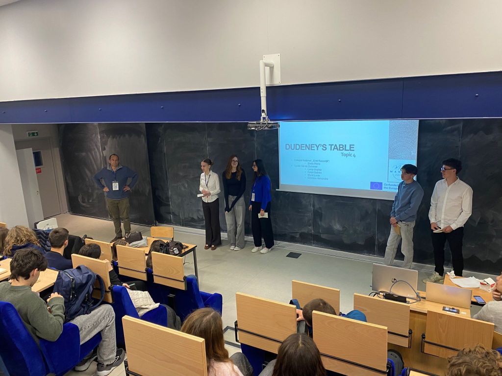 În dimineața zilei de 2 aprilie, ne-am îndreptat către Universitatea Valrose din Nice. După ce am trecut prin curtea campusului, am luat parte la prezentările din amfiteatrul universității, care abordau diverse teme matematice, lucrate cu multă dedicație de către elevii din toată Europa. În prima parte a zilei, am urmărit trei prezentări din trei țări diferite, inclusiv, prezentarea rezultatelor cercetării Dudeney’s Table.