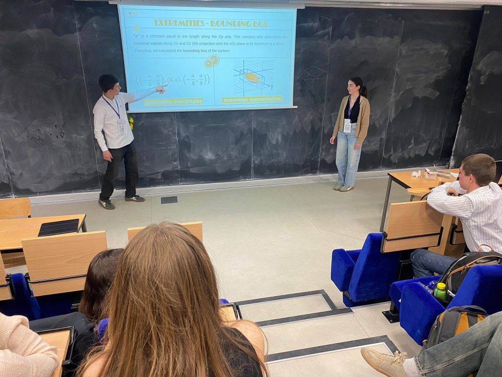 După-amiaza am petrecut-o în amfiteatrul universității ascultând și prezentând temele de cercetare care au stârnit curiozitatea multor elevi și profesori, dar nu numai. Cu multă dedicație, viitorii matematicieni ne-au prezentat rezultatele la care au ajuns în timpul cercetării, răspunzând, de asemenea, la întrebările adresate de către audiență.